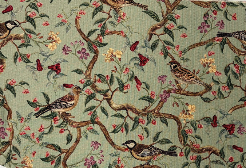 Tessuto arredo gobelin "Bird Allure" fondo pistacchio